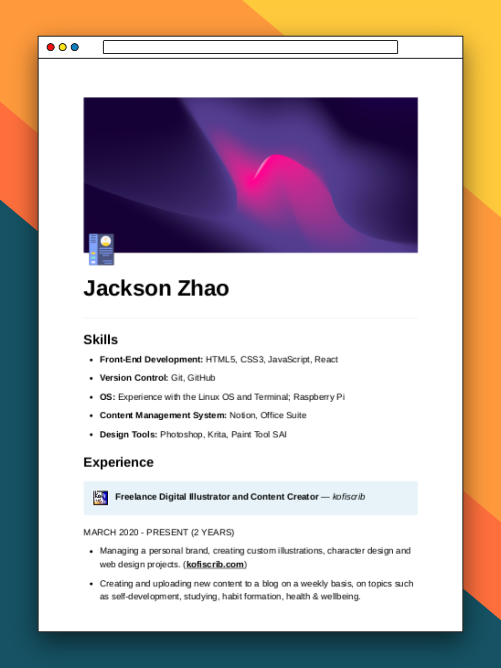 Build your ideal minimalistic resume with this Notion template focused on highlighting you as the best candidate for any position.